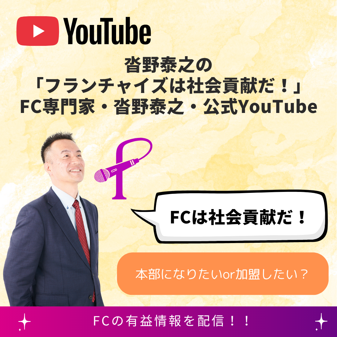 YouTubeやポッドキャストなどで配信しております。フランチャイズの事をもっと身近に皆様に知って頂くために、専門性を網羅しながらも、できるだけ聞きやすいチャンネルを意識しております。